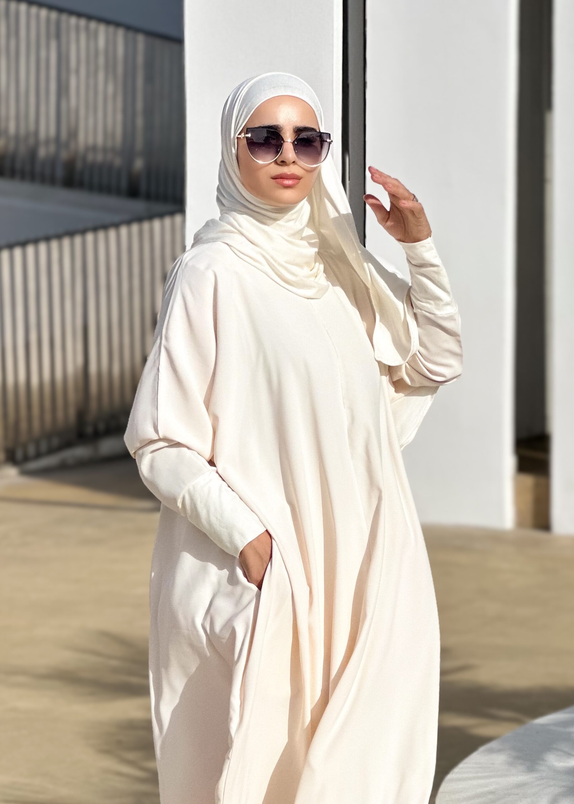 Clear53.5″ (136 cm)55″ (140 cm)56″ (143 cm)57″ (146 cm)Lightweight cotton abaya with matching trousers, the abaya features a discreet faux pocket that allows you to adjust the trousers waistband and access the trousers pocket with ease. Perfect for travel, daily wear, or Umrah. Hijab not included*Note: This abaya comes in a standard size (Fits sizes S to XL.). Please choose the length that best matches your height.